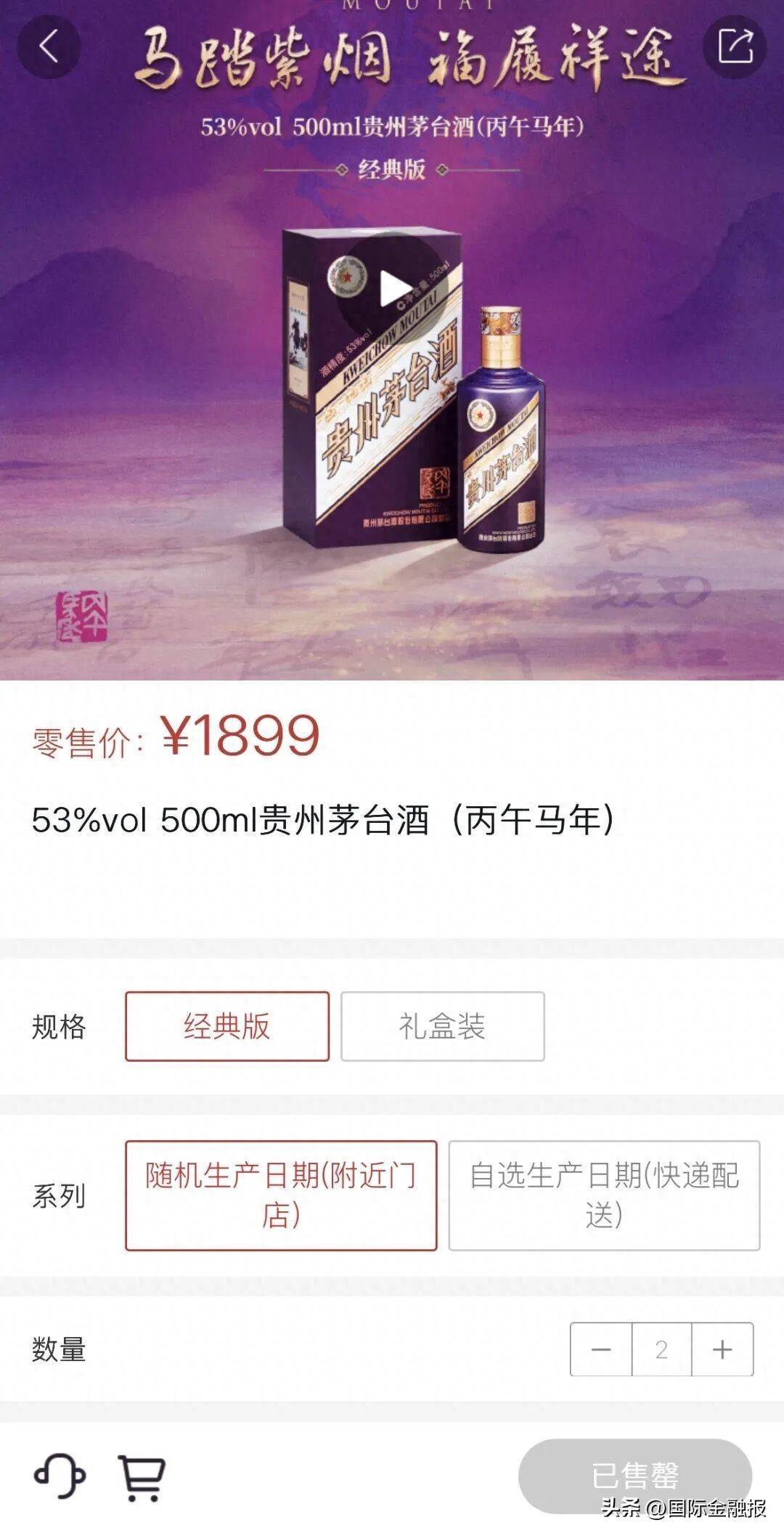 昨天,马年生肖茅台正式在i茅台app上市发售,在白酒行业调整加剧的大背景下,变化正在发生——过去五年生肖茅台的官方指导价都是2499元/瓶,今年购买门槛有所降低:提供了经典版、礼盒装和珍享版三个版本,官方定价分别为1899元/瓶、3789元/盒(两瓶)和2499元/瓶。其中,经典版和礼盒装还支持自选生产日期。